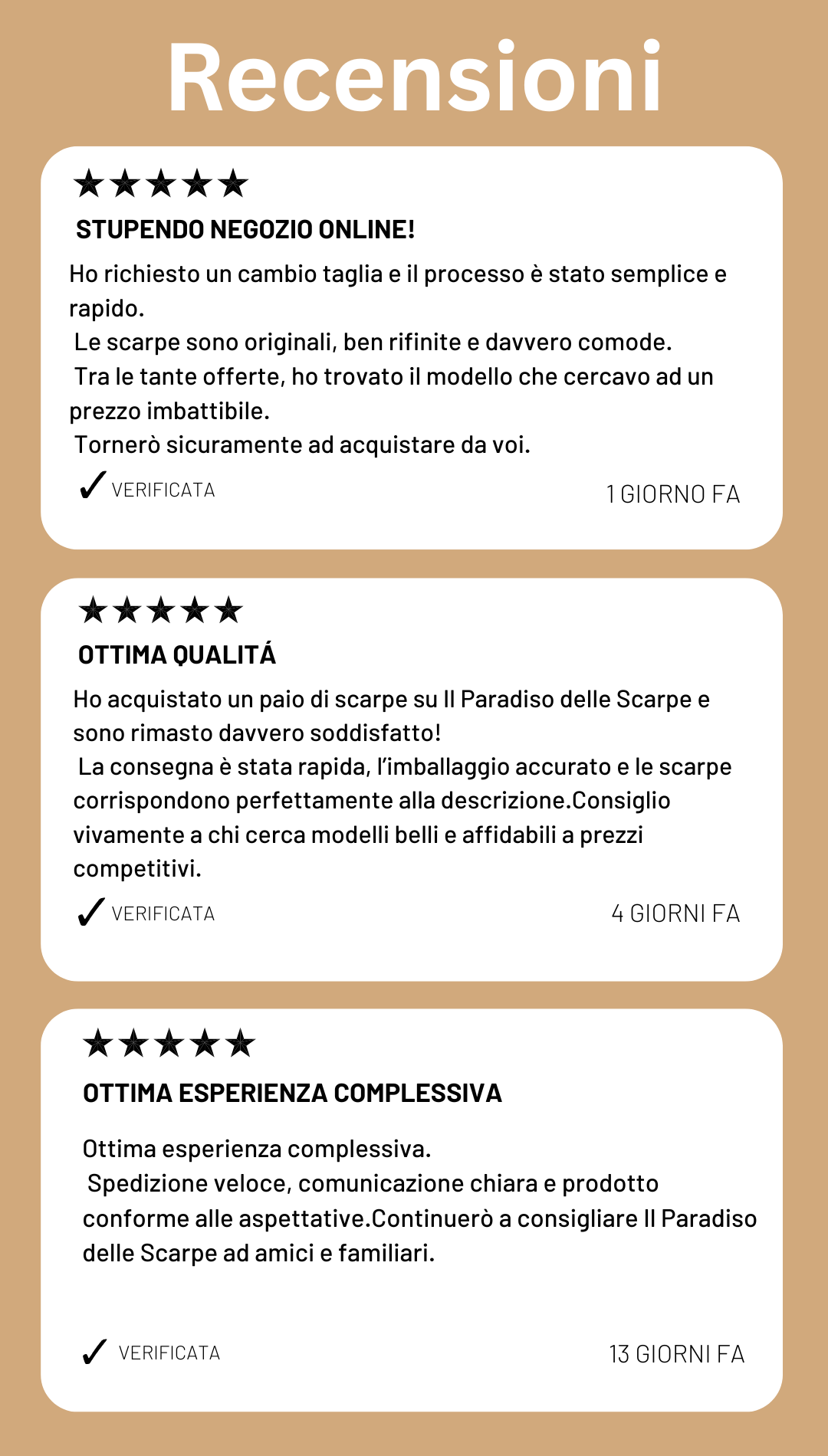 Certamente! Puoi richiedere un cambio taglia entro 14 giorni dalla consegna, purché le scarpe siano nuove e mai indossate.
